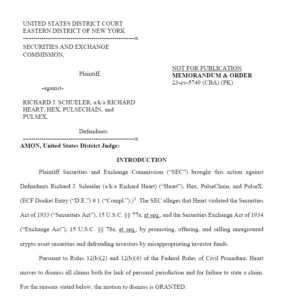 Samenvatting van het rechtbankdocument in de zaak SEC vs. Richard Heart (HEX, PulseChain, PulseX)